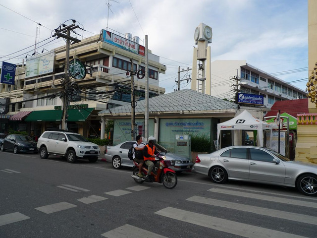 另外,請特別注意這個地點,鐘塔旁邊是星巴克,而對面就是夜市了,以華欣而言,這條大馬路是最繁華熱鬧的主幹道了。