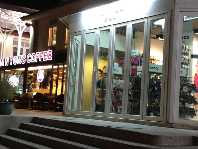 走出了這小小夜市,往主夜市的入口方向走(對面是鐘塔和星巴克,就是"往日情懷"那條大馬路的主夜市入口),右轉直走直走直走,大概十五分鐘左右吧,就會看到下圖這個outlet賣場,這可是一堆知名運動品牌的商品,如球鞋;外套和手提包;襪子;涼鞋的集中地,我在這裡花了不到台幣1500元,買了一雙Reebok的球鞋和旅行手提包,這個地方讓我有了購物的慾望啊