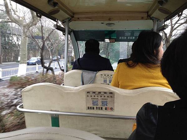 遊西湖除了公交車外,我建議還有一個花費較多,但也蠻值得一遊的交通方式,那就是搭西湖的環湖電瓶車,如下圖。