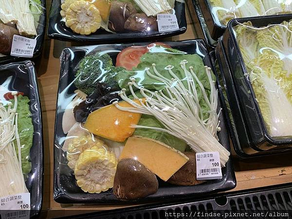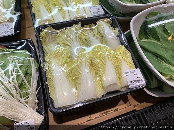 我自己在挑選這些食材時,會以我常去吃的涮涮鍋店的豬肉鍋,以一鍋280元的價格做為價格的基數,開始估算所拿的食材份量和金額,以我拿的綜合菜盤需要花100元(綜合菜盤的種類不止一種,依價位不同而有不同的菜盤組合),再加上梅花豬肉56元,以此基數來對比我平常吃的豬肉涮涮鍋280元金額來看,我還有124元可選,還可以再挑個49元的高山娃娃菜和一份39元的3顆魚丸就差不多到280元了。
