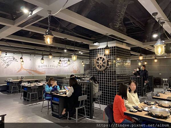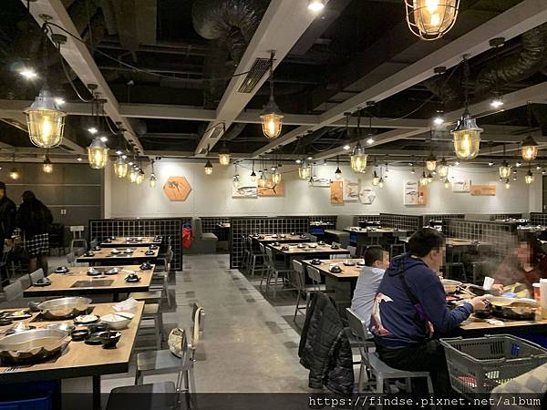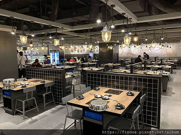 空間明亮,佔地寬廣。在桌子的下方有活動櫃可以擺放食材,減少了桌面不大的困擾,尤其是兩人座位的桌面面積實在不大,放個兩盤食材就快滿桌,更別說還有碗盤和調料沾醬。